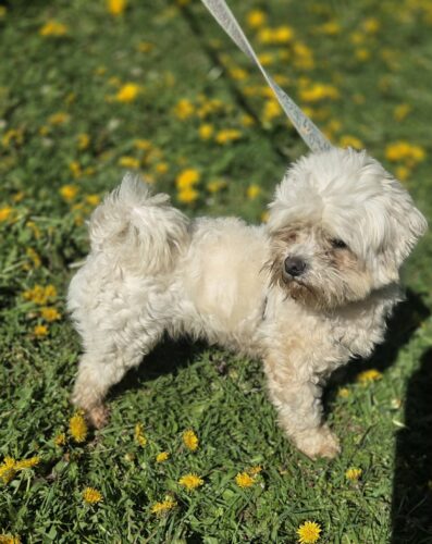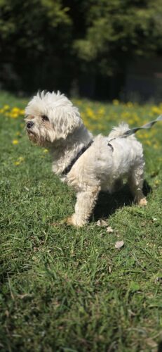 młody piesek Maltańczyk szuka spokojnego cierpliwego domu .