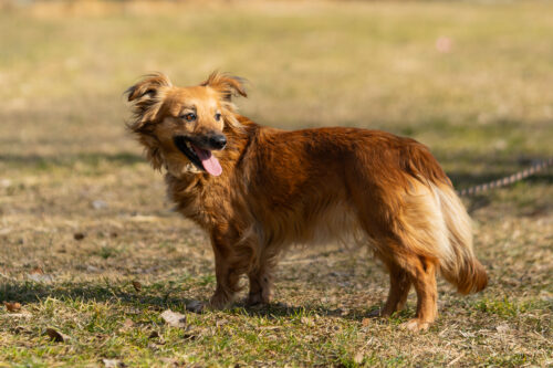 Kakao to młody piesek w typie owczarka ,podaje łapki