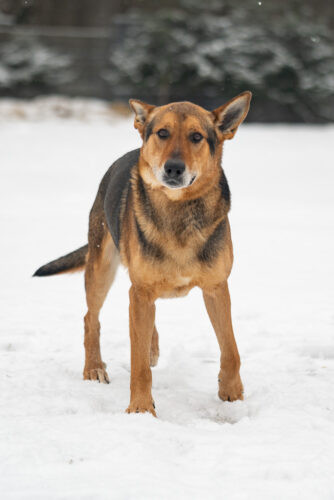 Krejzolka trafiła do nas w dniu 02.02 z terenu Krośniewic kolejna w typie owczarka. Po okresie kwarantanny i profilaktyce będzie do adopcji