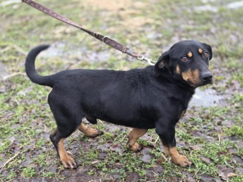 Kangur to młodziutki piesek w typie Jamnika ,potrafi chodzić na smyczy idealny do bloków.